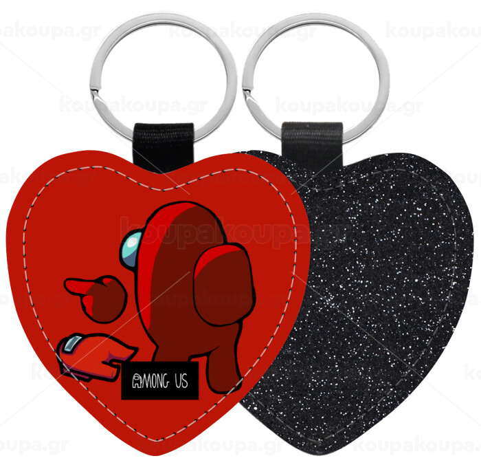 Among US i am impostor..., Μπρελόκ PU δερμάτινο glitter καρδιά ΜΑΥΡΟ