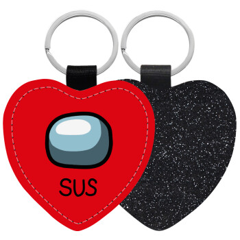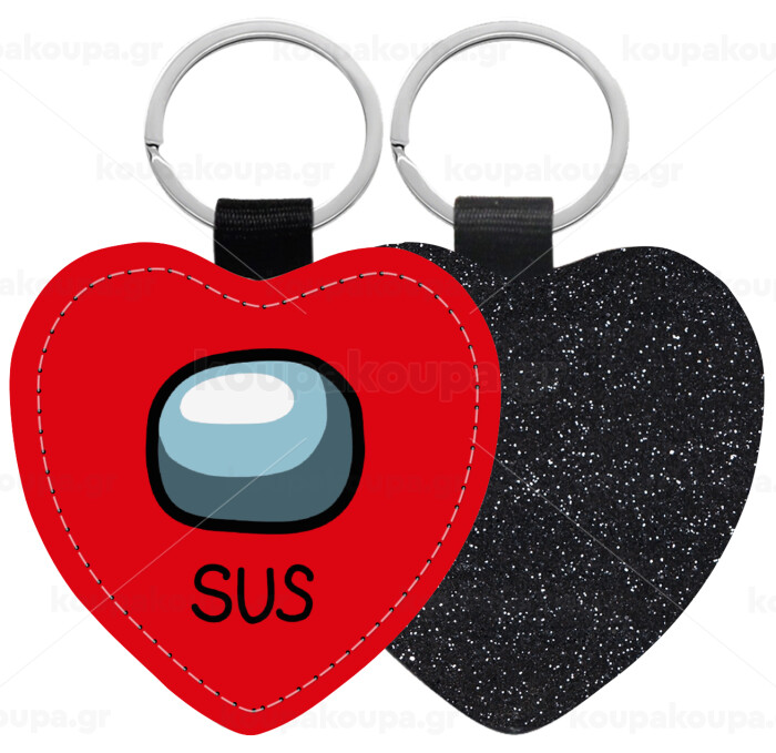 Among US SUS!!!, Μπρελόκ PU δερμάτινο glitter καρδιά ΜΑΥΡΟ