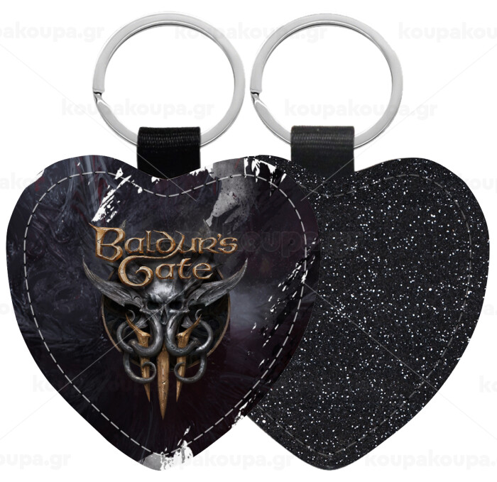Baldur's Gate, Μπρελόκ PU δερμάτινο glitter καρδιά ΜΑΥΡΟ