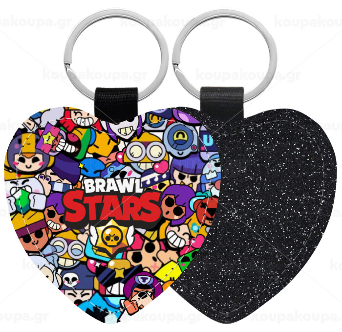 Brawl Stars characters, Μπρελόκ PU δερμάτινο glitter καρδιά ΜΑΥΡΟ