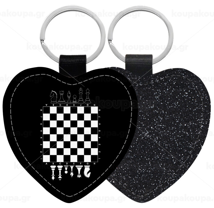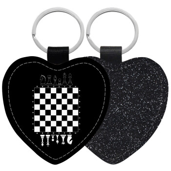 Chess, Μπρελόκ PU δερμάτινο glitter καρδιά ΜΑΥΡΟ