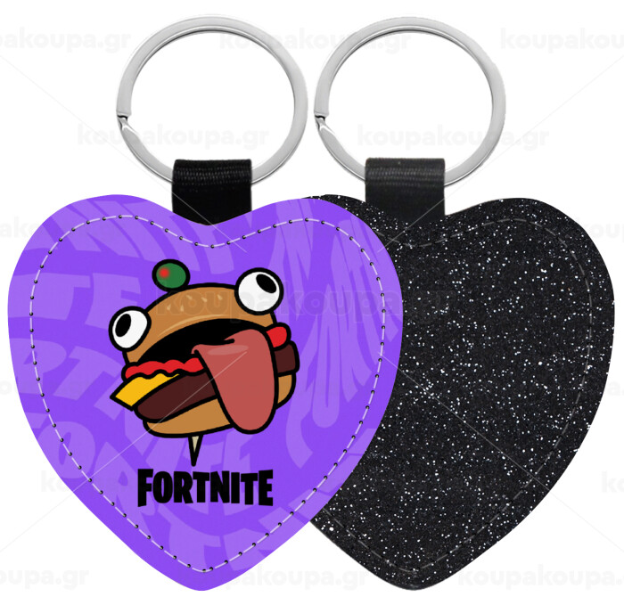 Fortnite Durr Burger, Μπρελόκ PU δερμάτινο glitter καρδιά ΜΑΥΡΟ