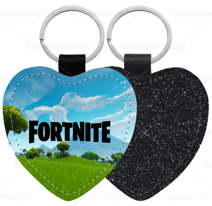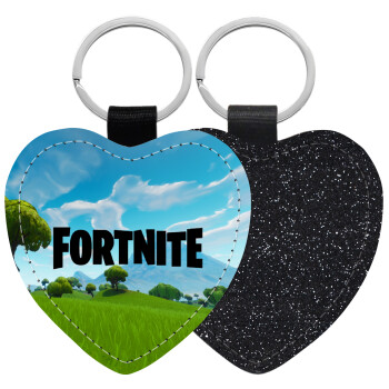 Fortnite landscape, Μπρελόκ PU δερμάτινο glitter καρδιά ΜΑΥΡΟ