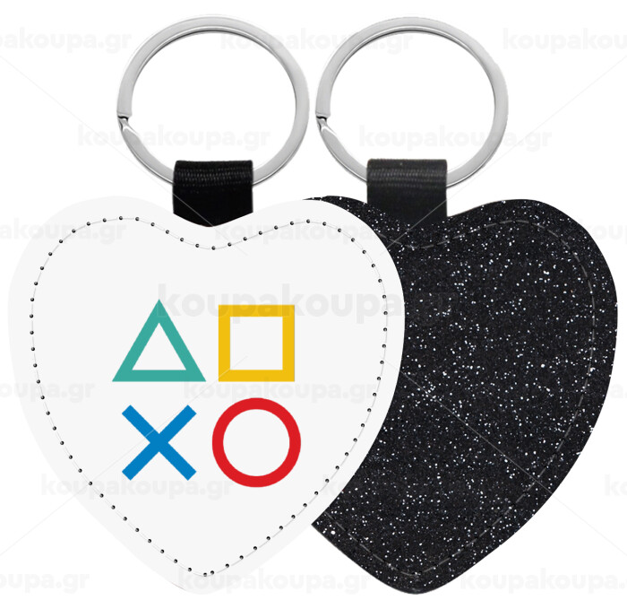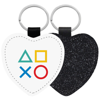 Gaming Symbols, Μπρελόκ PU δερμάτινο glitter καρδιά ΜΑΥΡΟ