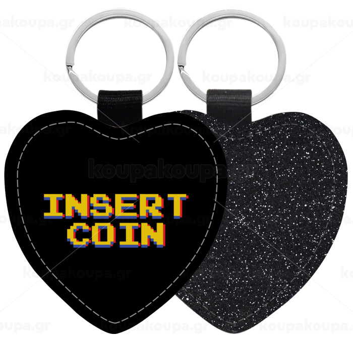 Insert coin!!!, Μπρελόκ PU δερμάτινο glitter καρδιά ΜΑΥΡΟ