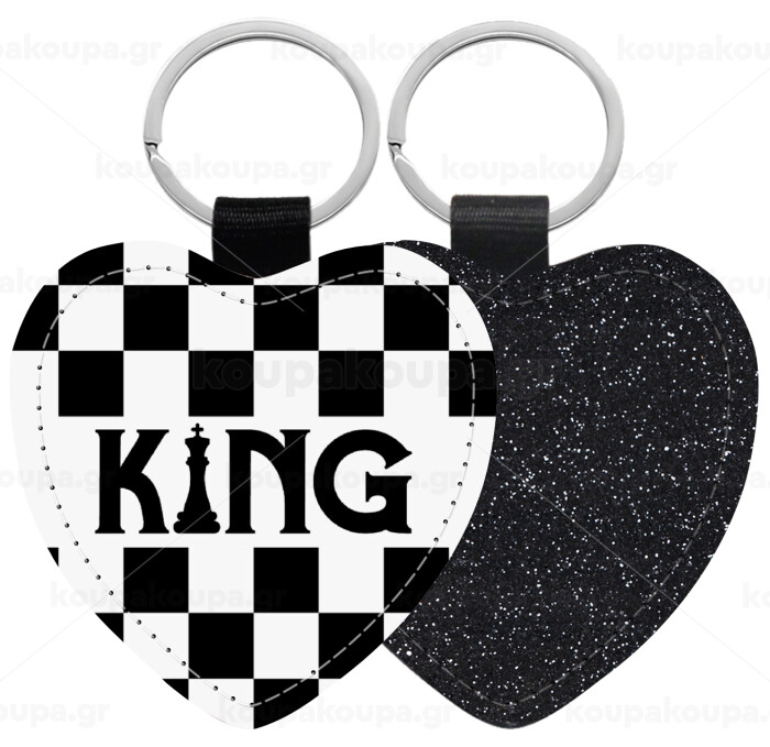 King chess, Μπρελόκ PU δερμάτινο glitter καρδιά ΜΑΥΡΟ