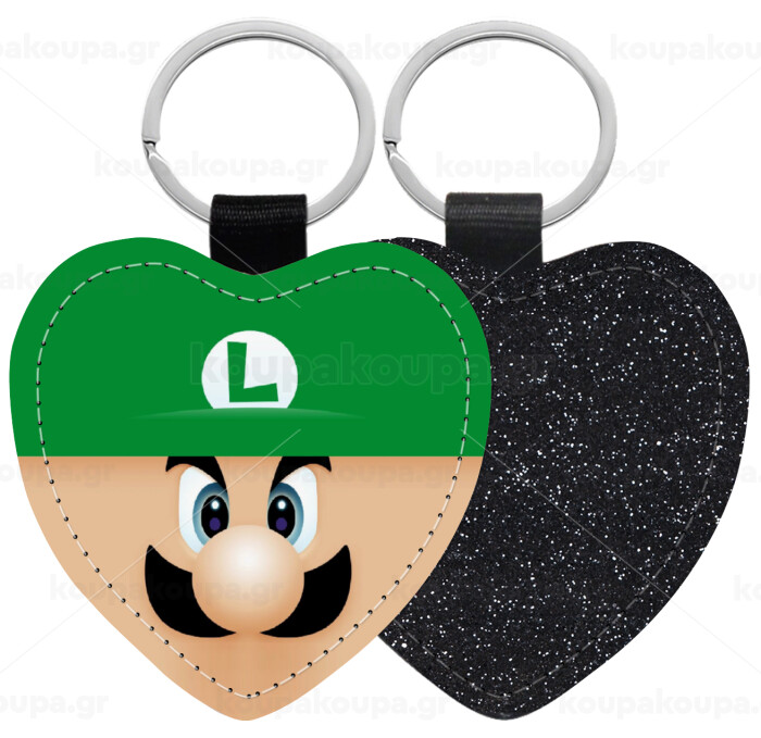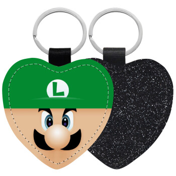 Luigi flat, Μπρελόκ PU δερμάτινο glitter καρδιά ΜΑΥΡΟ