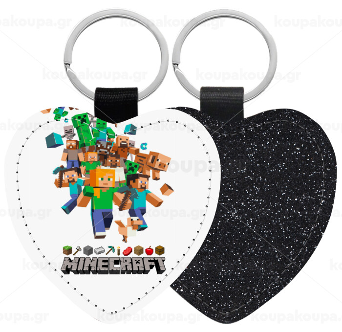 Minecraft adventure, Μπρελόκ PU δερμάτινο glitter καρδιά ΜΑΥΡΟ