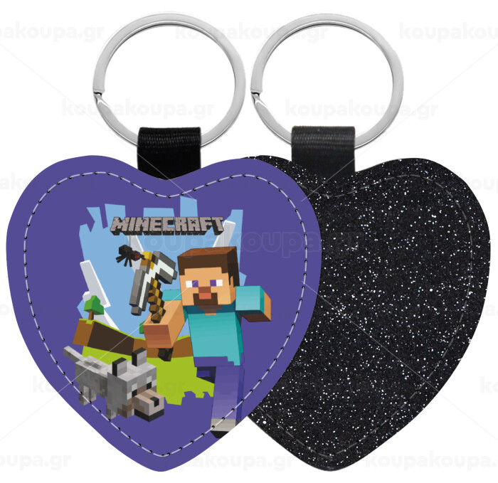 Minecraft Alex, Μπρελόκ PU δερμάτινο glitter καρδιά ΜΑΥΡΟ