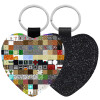 Minecraft blocks, Μπρελόκ PU δερμάτινο glitter καρδιά ΜΑΥΡΟ