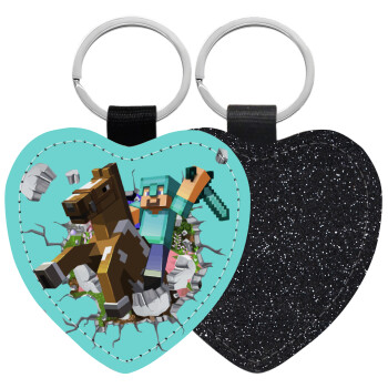 Minecraft brick, Μπρελόκ PU δερμάτινο glitter καρδιά ΜΑΥΡΟ