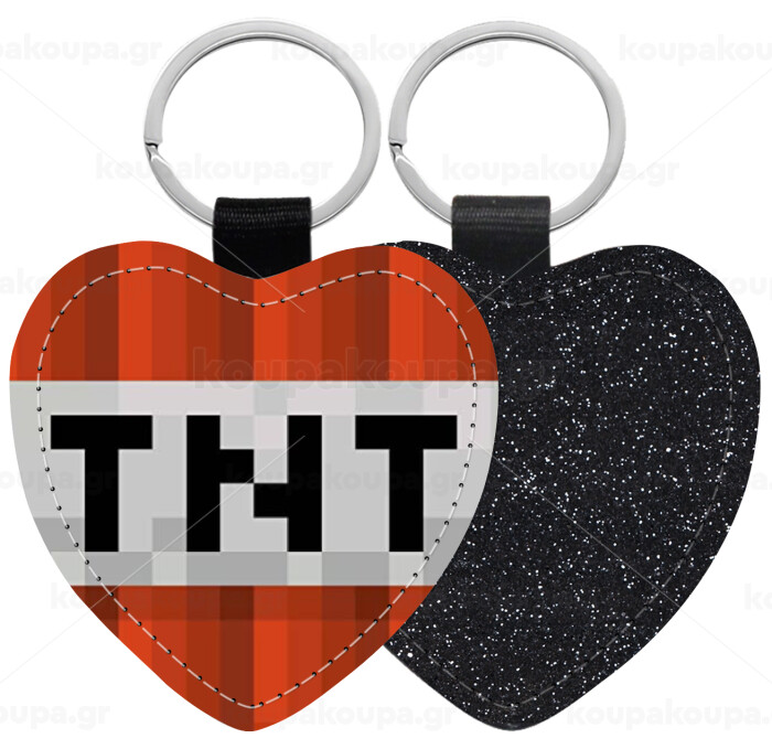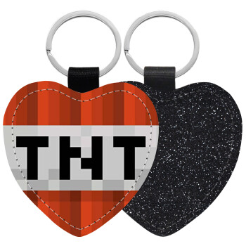 Minecraft TNT, Μπρελόκ PU δερμάτινο glitter καρδιά ΜΑΥΡΟ
