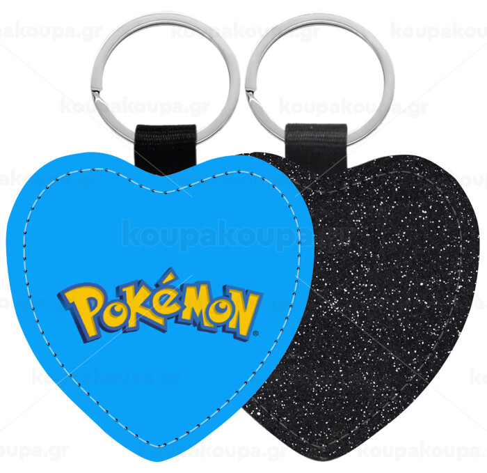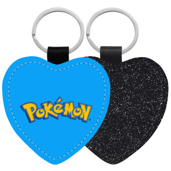 Pokemon, Μπρελόκ PU δερμάτινο glitter καρδιά ΜΑΥΡΟ