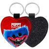 Poppy Playtime Huggy wuggy, Μπρελόκ PU δερμάτινο glitter καρδιά ΜΑΥΡΟ