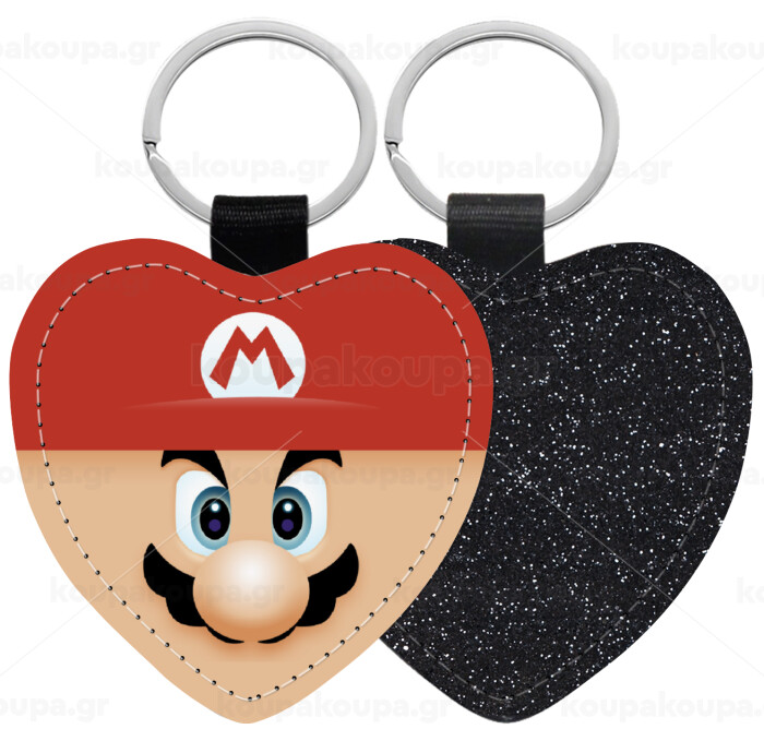 Super mario flat, Μπρελόκ PU δερμάτινο glitter καρδιά ΜΑΥΡΟ
