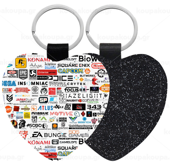 Video Game Studio Logos, Μπρελόκ PU δερμάτινο glitter καρδιά ΜΑΥΡΟ