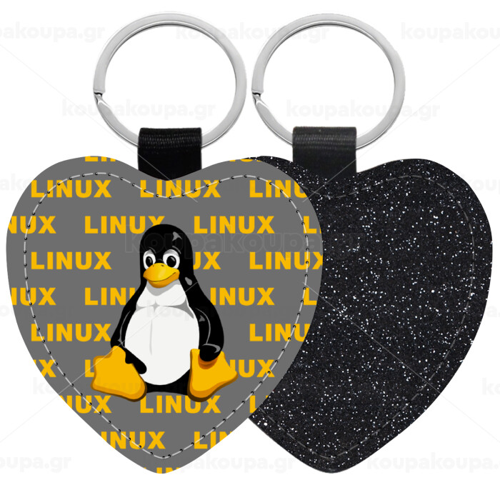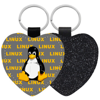 Linux, Μπρελόκ PU δερμάτινο glitter καρδιά ΜΑΥΡΟ