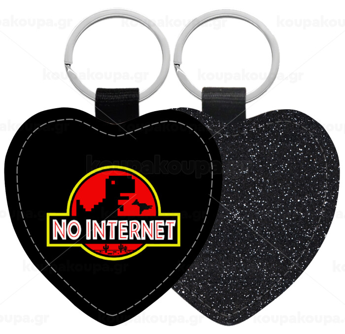 No internet, Μπρελόκ PU δερμάτινο glitter καρδιά ΜΑΥΡΟ