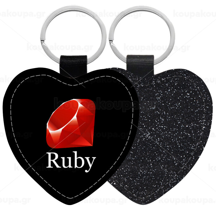Ruby, Μπρελόκ PU δερμάτινο glitter καρδιά ΜΑΥΡΟ
