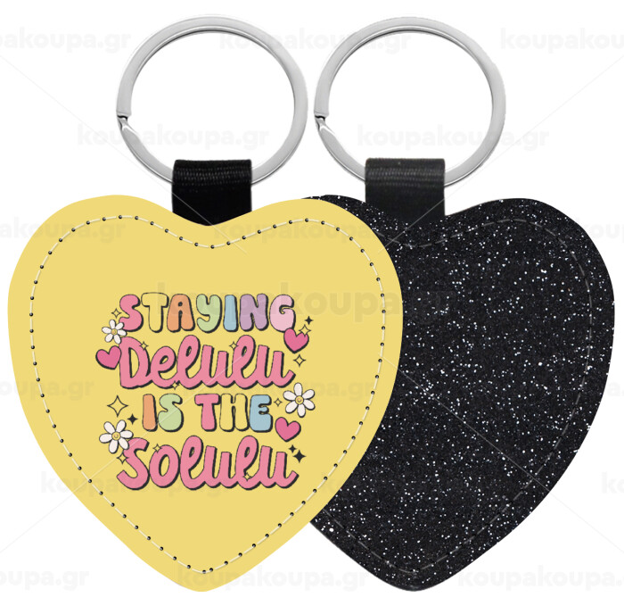 Delulu, Μπρελόκ PU δερμάτινο glitter καρδιά ΜΑΥΡΟ