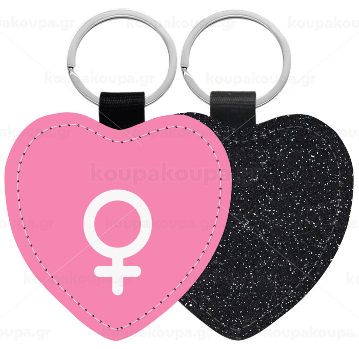 FEMALE, Μπρελόκ PU δερμάτινο glitter καρδιά ΜΑΥΡΟ