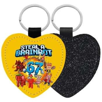 Steal a Brainrot 67 Roblox Style, Μπρελόκ PU δερμάτινο glitter καρδιά ΜΑΥΡΟ