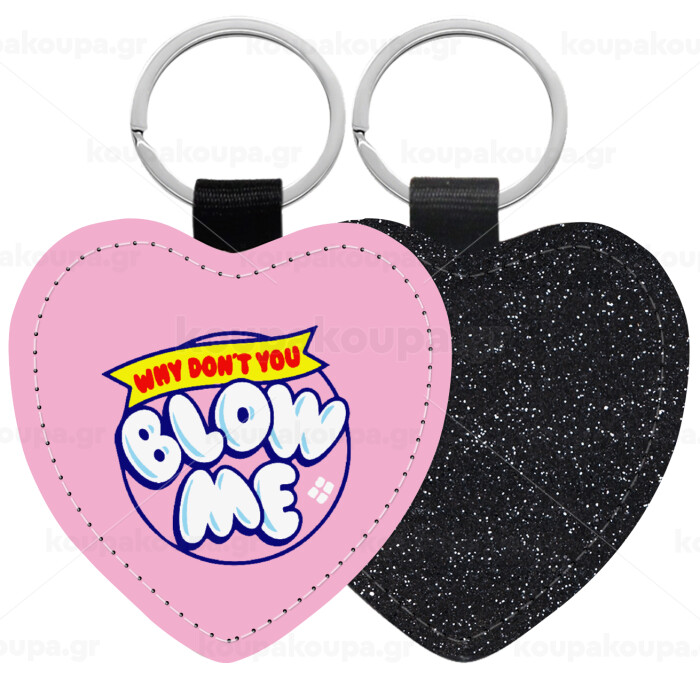 Why Don't You Blow Me Funny, Μπρελόκ PU δερμάτινο glitter καρδιά ΜΑΥΡΟ