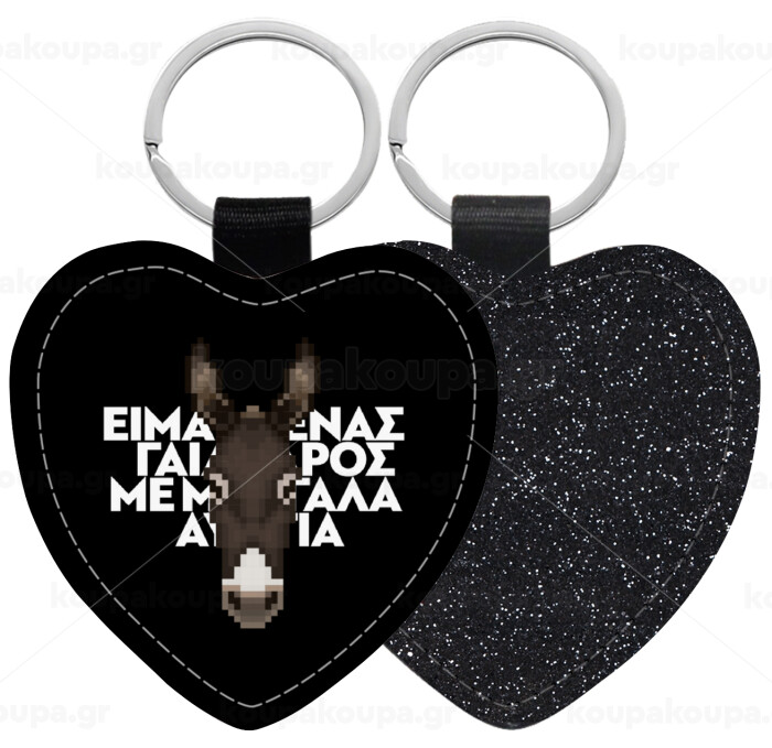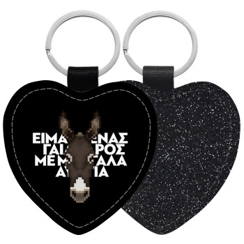 Είμαι ένας γάιδαρος με μεγάλα αυτιά., Μπρελόκ PU δερμάτινο glitter καρδιά ΜΑΥΡΟ