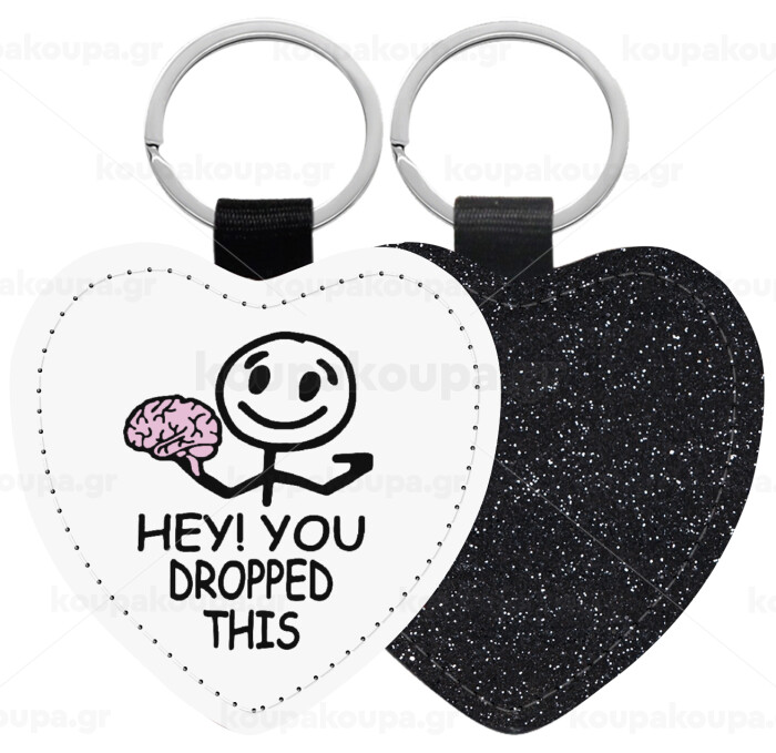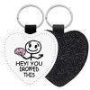 Hey! You dropped this, Μπρελόκ PU δερμάτινο glitter καρδιά ΜΑΥΡΟ