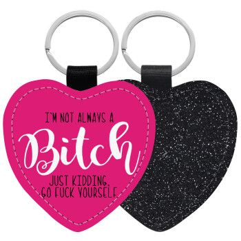 I'm not always a bitch, just kidding go f..k yourself , Μπρελόκ PU δερμάτινο glitter καρδιά ΜΑΥΡΟ