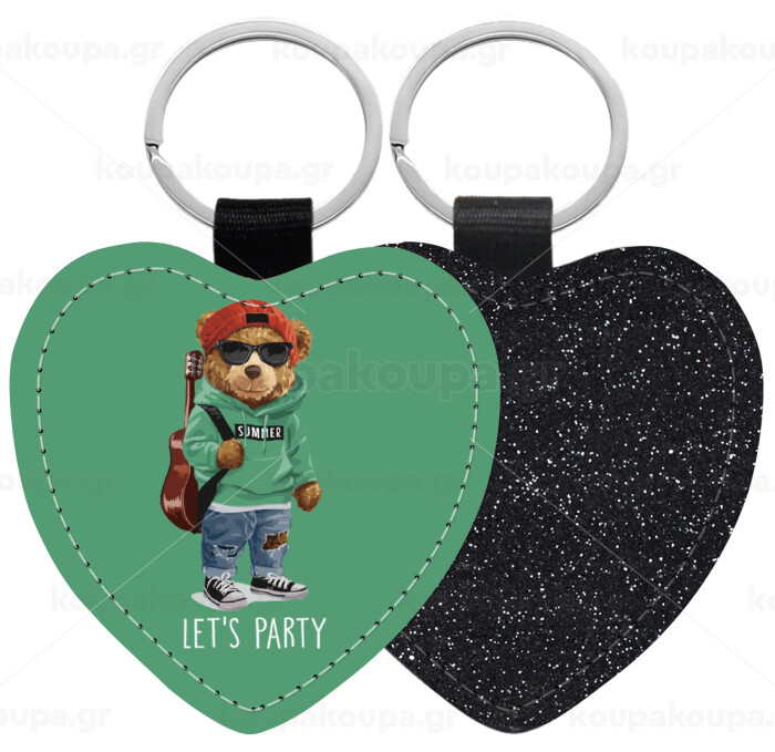 Let's Party Bear, Μπρελόκ PU δερμάτινο glitter καρδιά ΜΑΥΡΟ