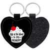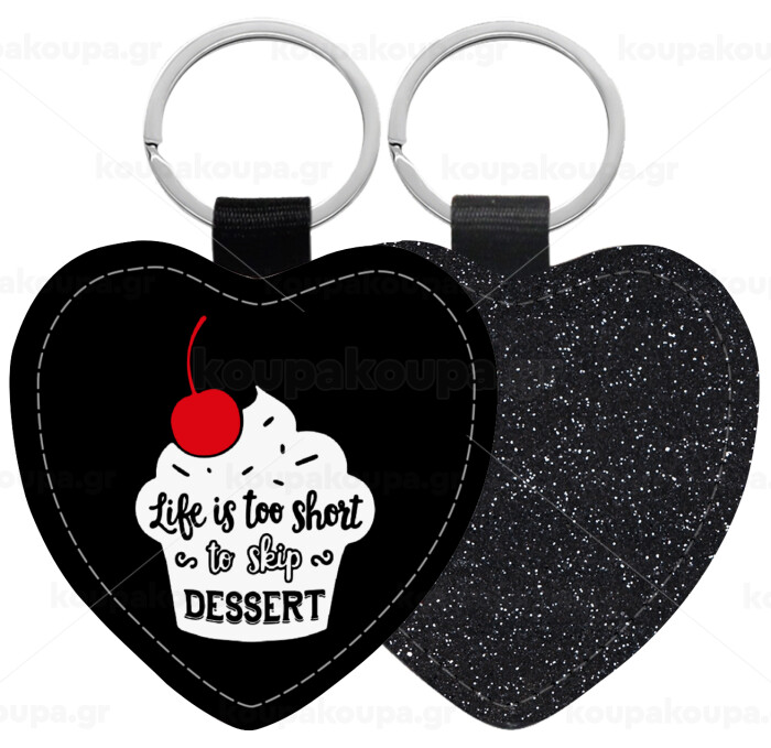 Life is too short, to skip Dessert, Μπρελόκ PU δερμάτινο glitter καρδιά ΜΑΥΡΟ