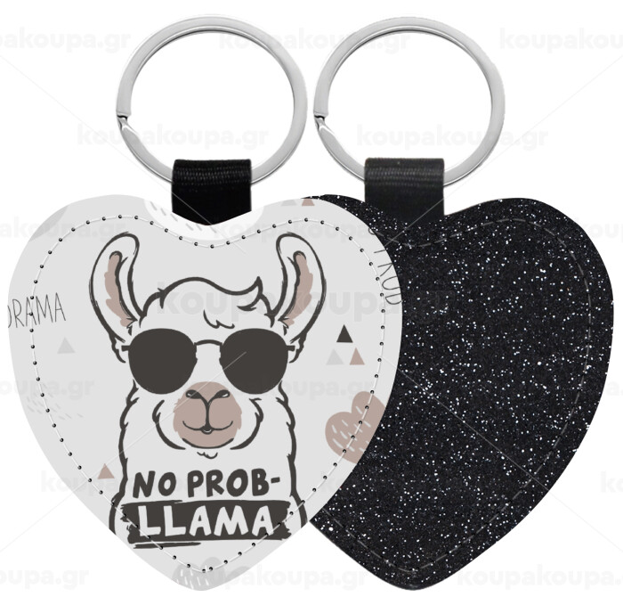 No Prob Llama, Μπρελόκ PU δερμάτινο glitter καρδιά ΜΑΥΡΟ