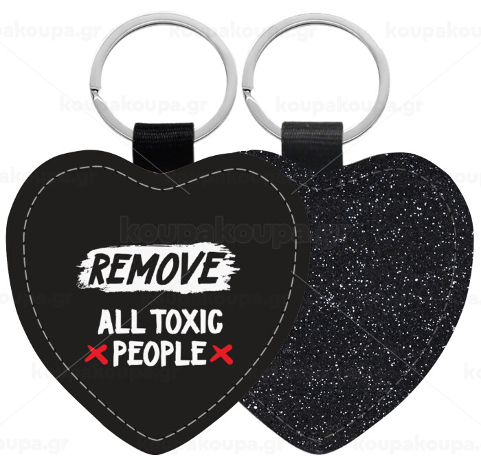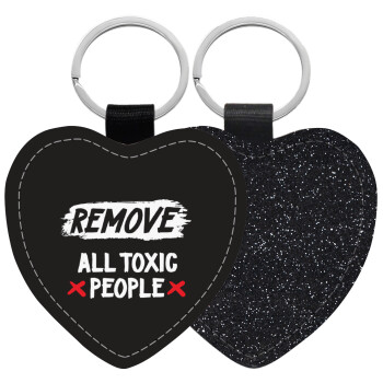 Remove all toxic people, Μπρελόκ PU δερμάτινο glitter καρδιά ΜΑΥΡΟ