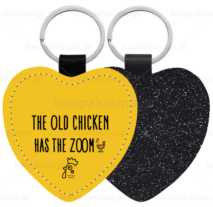 The old chicken has the zoom, Μπρελόκ PU δερμάτινο glitter καρδιά ΜΑΥΡΟ
