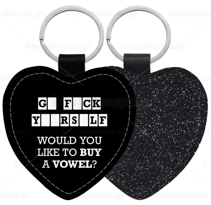 Wheel of fortune, go f..k yourself, Μπρελόκ PU δερμάτινο glitter καρδιά ΜΑΥΡΟ