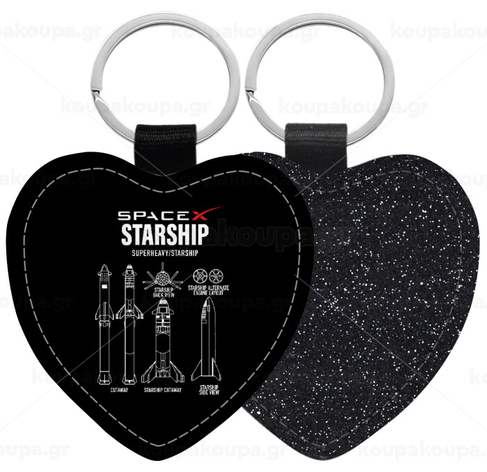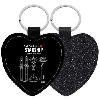 Space X, Μπρελόκ PU δερμάτινο glitter καρδιά ΜΑΥΡΟ