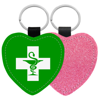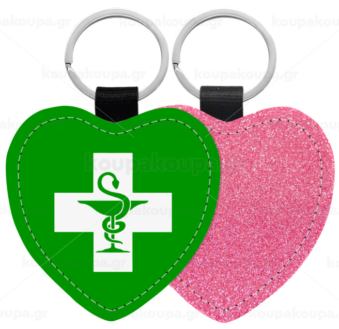 Φαρμακείο, Μπρελόκ PU δερμάτινο glitter καρδιά ΡΟΖ