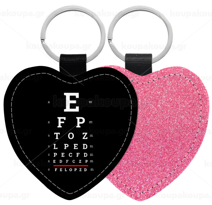 EYE test chart, Μπρελόκ PU δερμάτινο glitter καρδιά ΡΟΖ