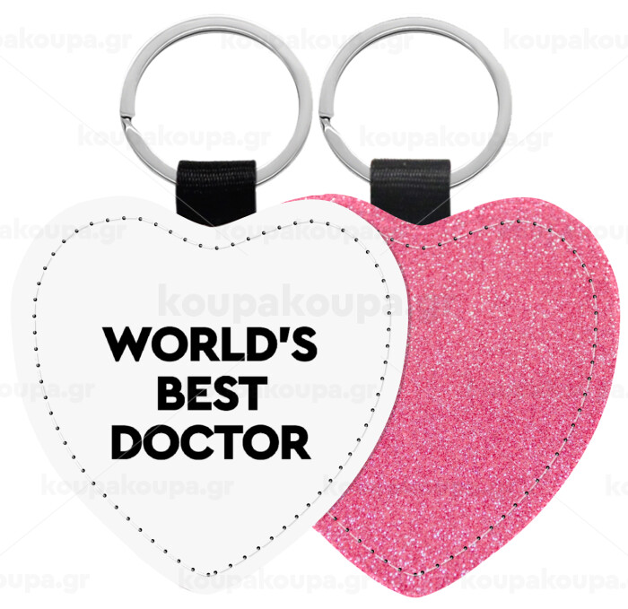 World's Best Doctor, Μπρελόκ PU δερμάτινο glitter καρδιά ΡΟΖ