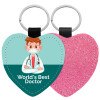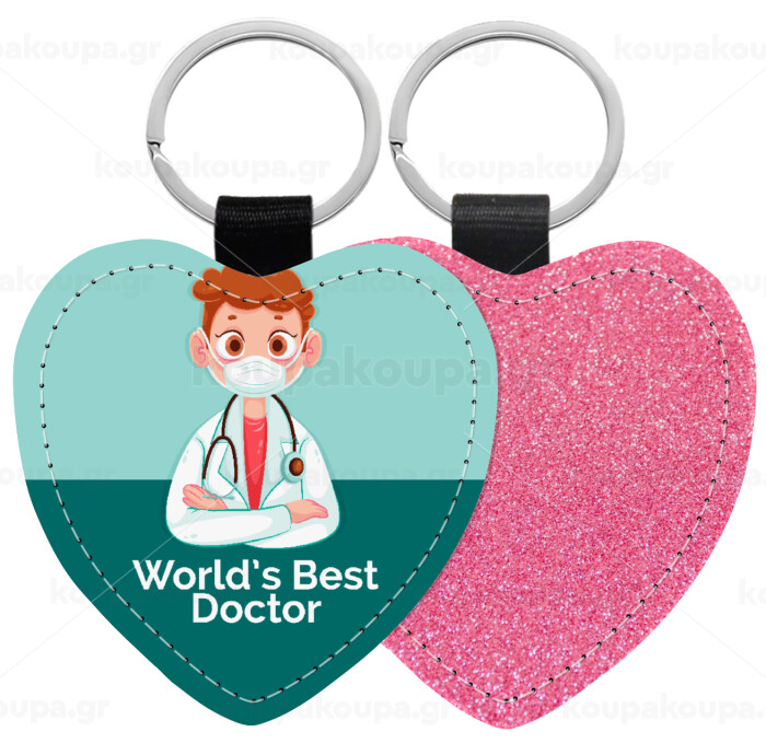 World's Best Doctor, Μπρελόκ PU δερμάτινο glitter καρδιά ΡΟΖ