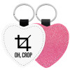 Oh Crop, Μπρελόκ PU δερμάτινο glitter καρδιά ΡΟΖ