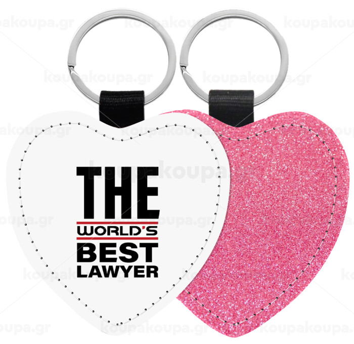 The world's best Lawyer, Μπρελόκ PU δερμάτινο glitter καρδιά ΡΟΖ