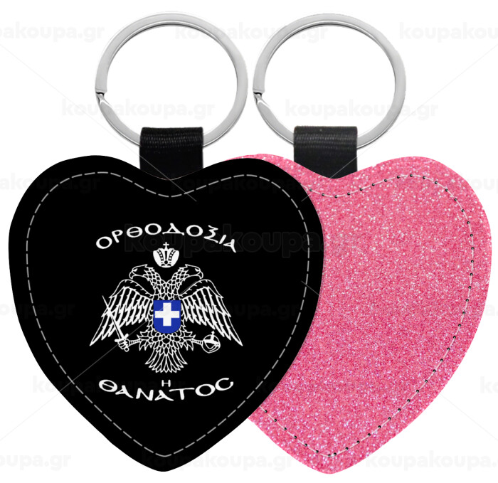 Ορθοδοξία ή Θάνατος, Μπρελόκ PU δερμάτινο glitter καρδιά ΡΟΖ