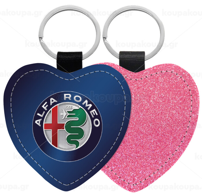 Alfa Romeo, Μπρελόκ PU δερμάτινο glitter καρδιά ΡΟΖ