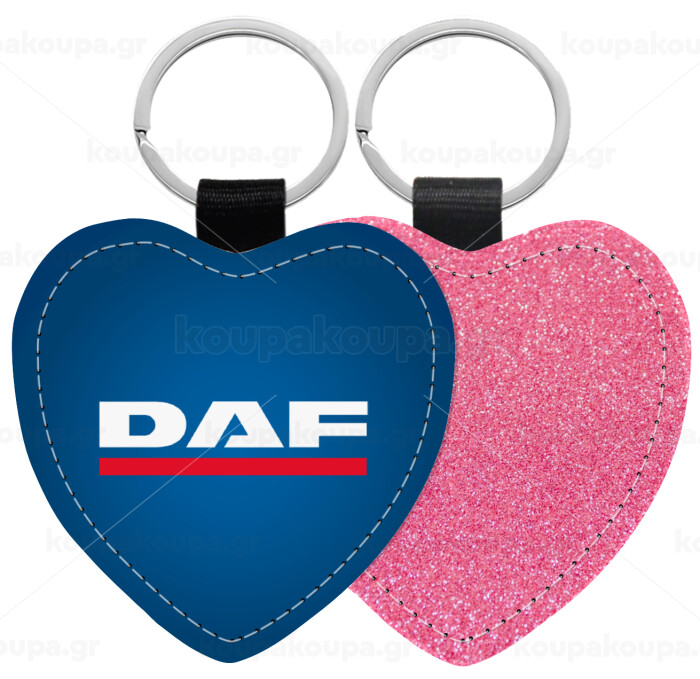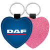 DAF, Μπρελόκ PU δερμάτινο glitter καρδιά ΡΟΖ