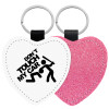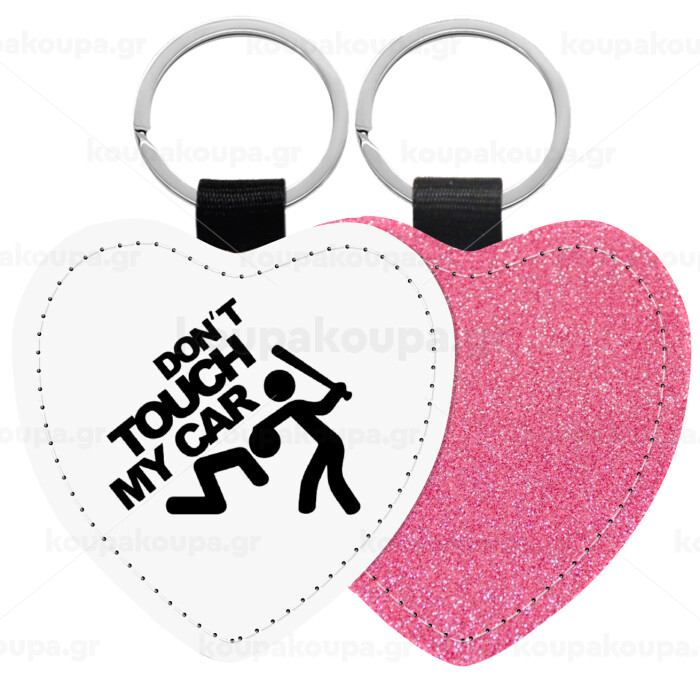 Don't touch my car, Μπρελόκ PU δερμάτινο glitter καρδιά ΡΟΖ