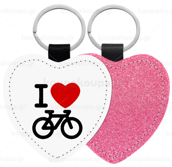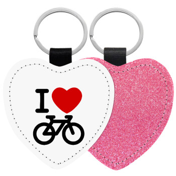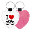 I love Bike, Μπρελόκ PU δερμάτινο glitter καρδιά ΡΟΖ