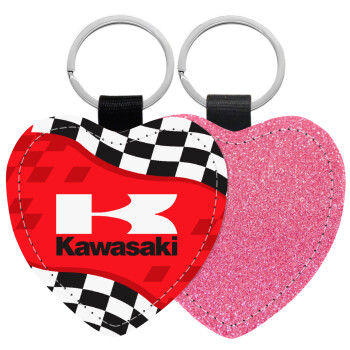 Kawasaki, Μπρελόκ PU δερμάτινο glitter καρδιά ΡΟΖ