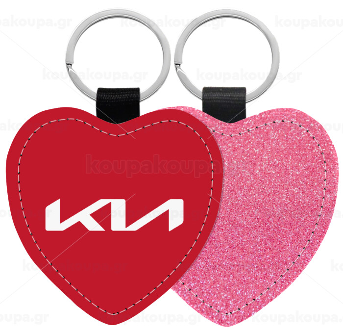 KIA, Μπρελόκ PU δερμάτινο glitter καρδιά ΡΟΖ